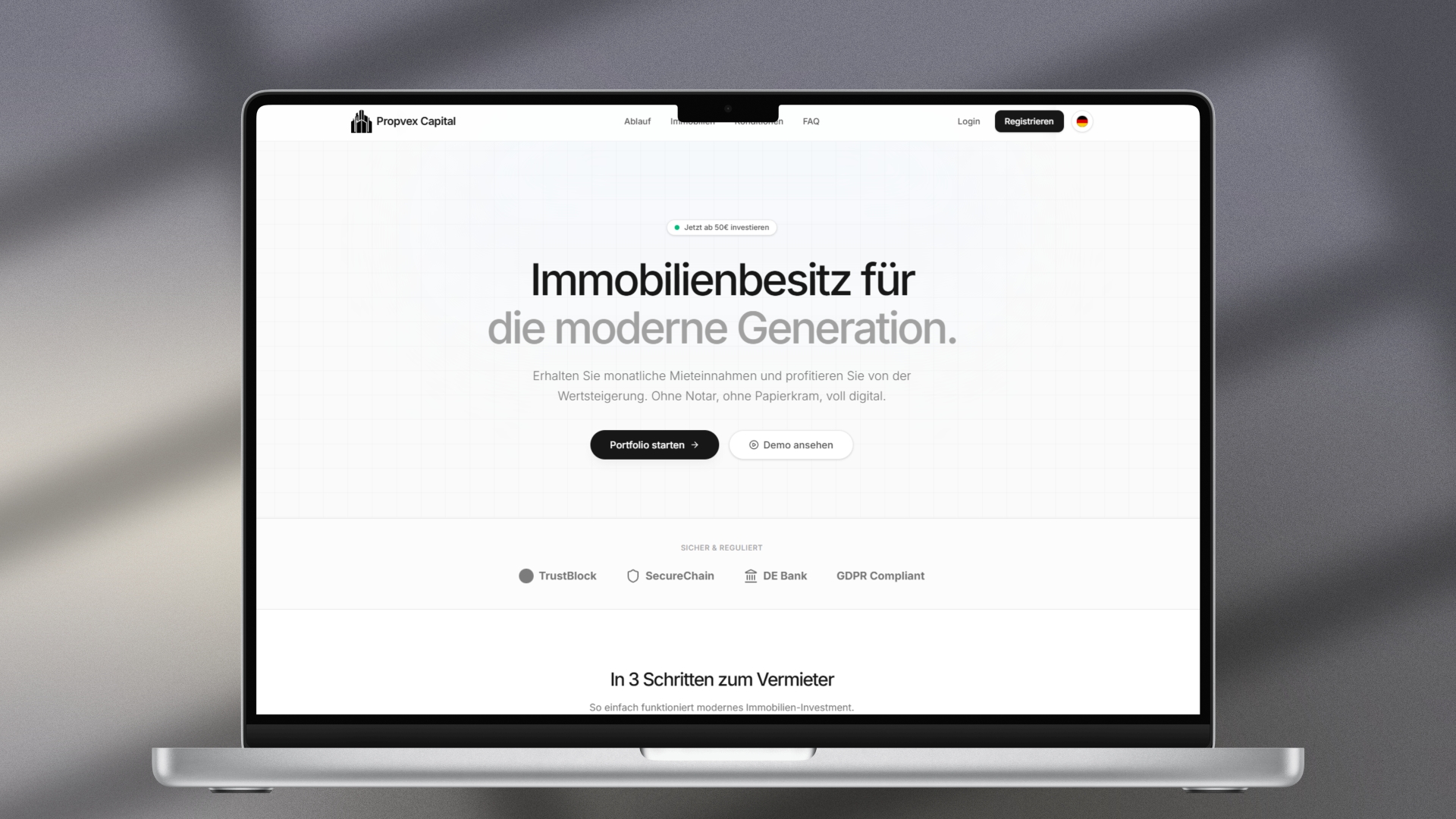 Propvex Capital benötigte eine hochwertige Website, die Vertrauen und Professionalität in der Finanzbranche ausstrahlt. Die Präsentation musste elegant und seriös sein.
